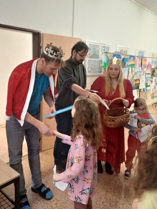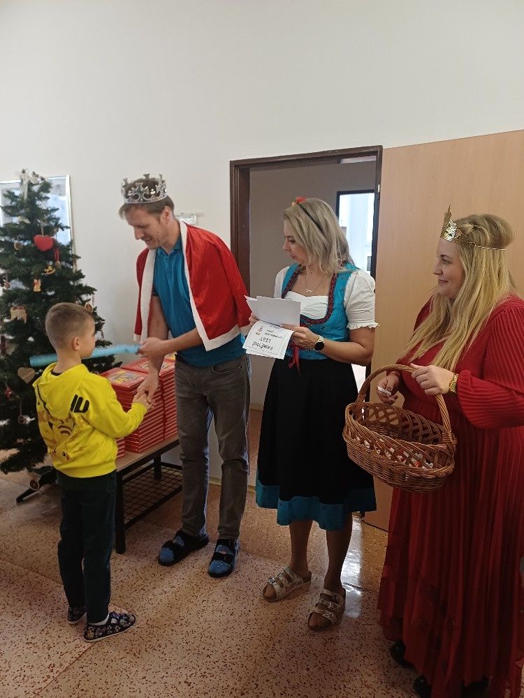 Naši milí prvňáčci se 8. 12. stali statečnými princeznami a princi, kde je čekalo pět úkolů ze znalosti čtení, psaní a skládání slabik. Po splnění úkolů dostali zlaté klíče a museli ještě vyluštit kouzelné zaklínadlo, kterým porazili zlého draka. Po osvobození pana krále byli odměněni vytouženým SLABIKÁŘEM. Všem moc gratulujeme.