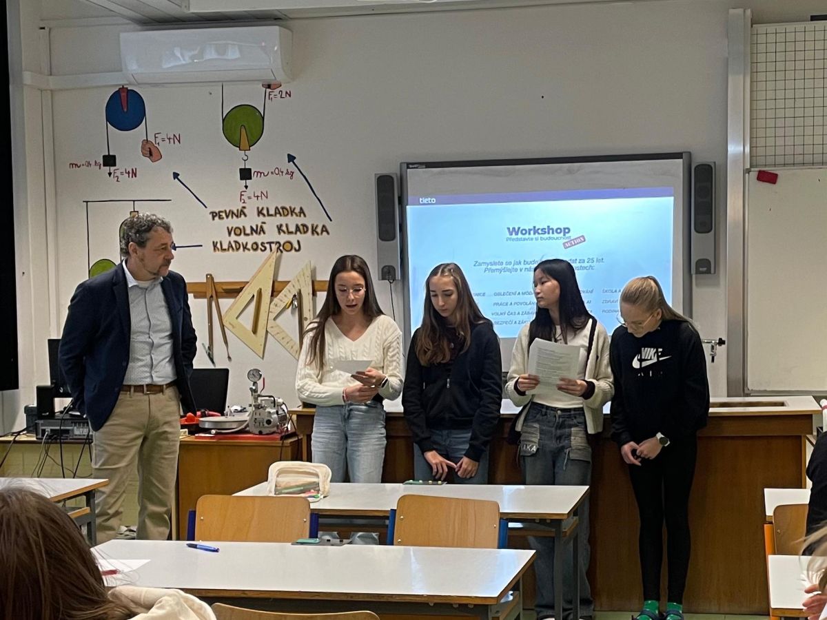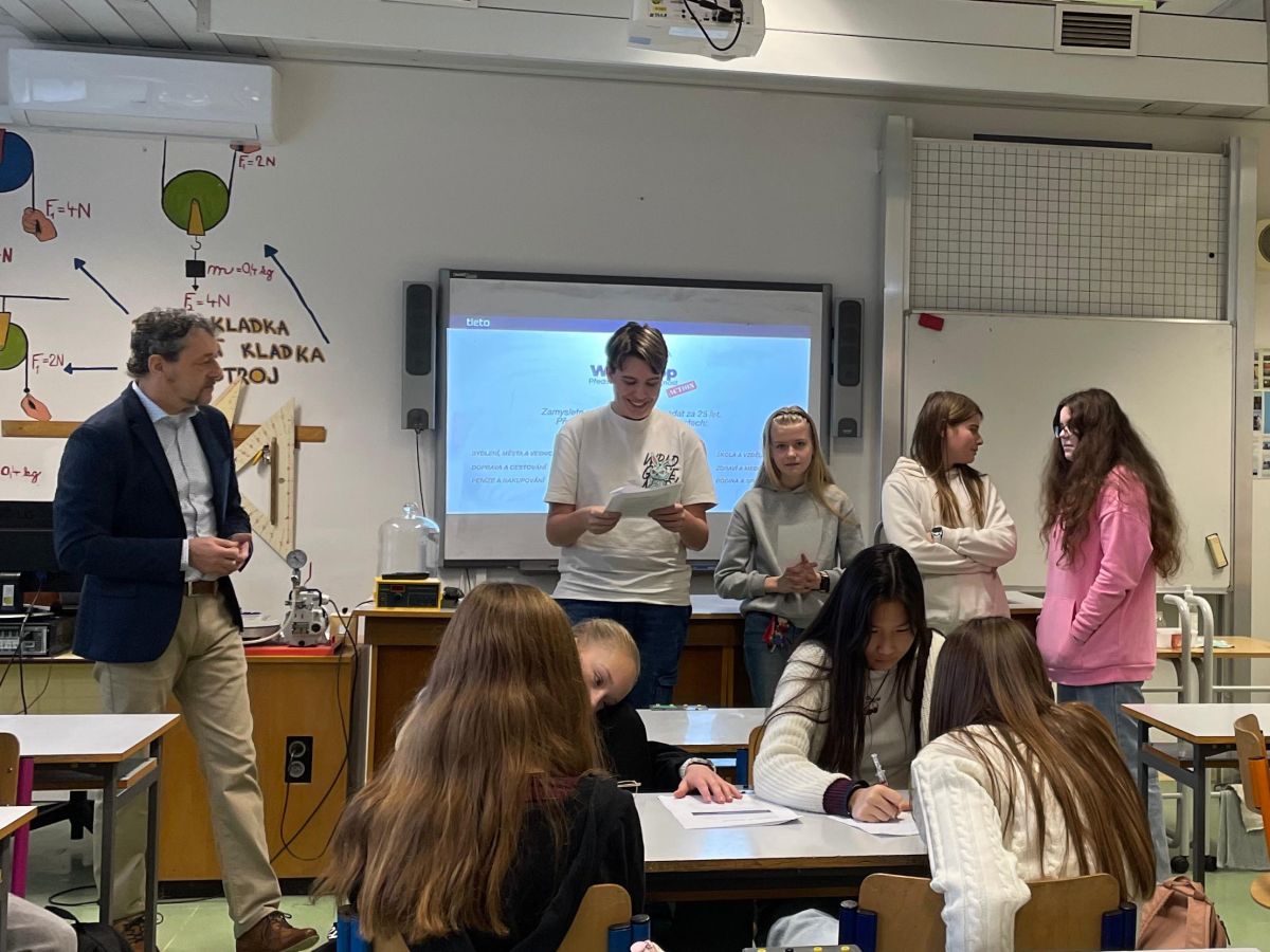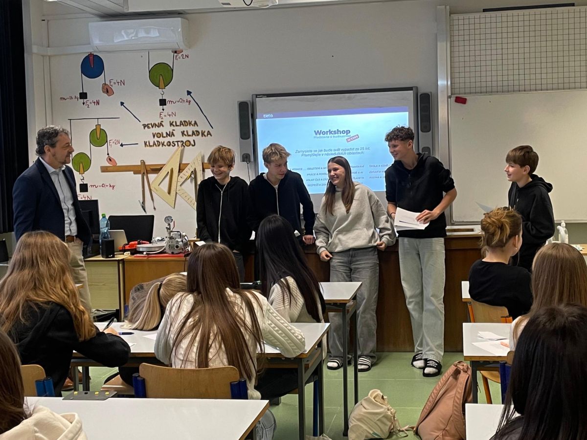 V pondělí 15. 12. se na naší škole uskutečnil inspirativní workshop Designers for Future, určený pro žáky 8. ročníku. Workshop vedl Tomáš Gröpl z firmy Tietoevry a byl zaměřen na kreativní myšlení