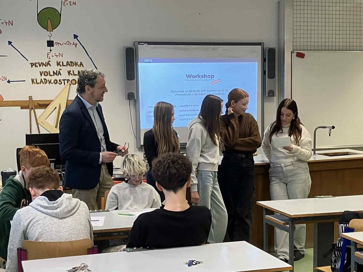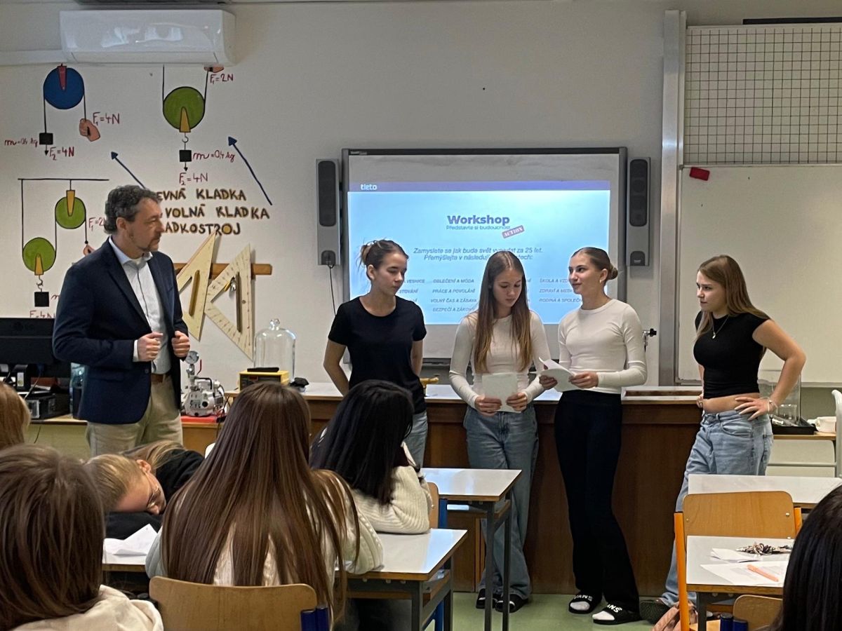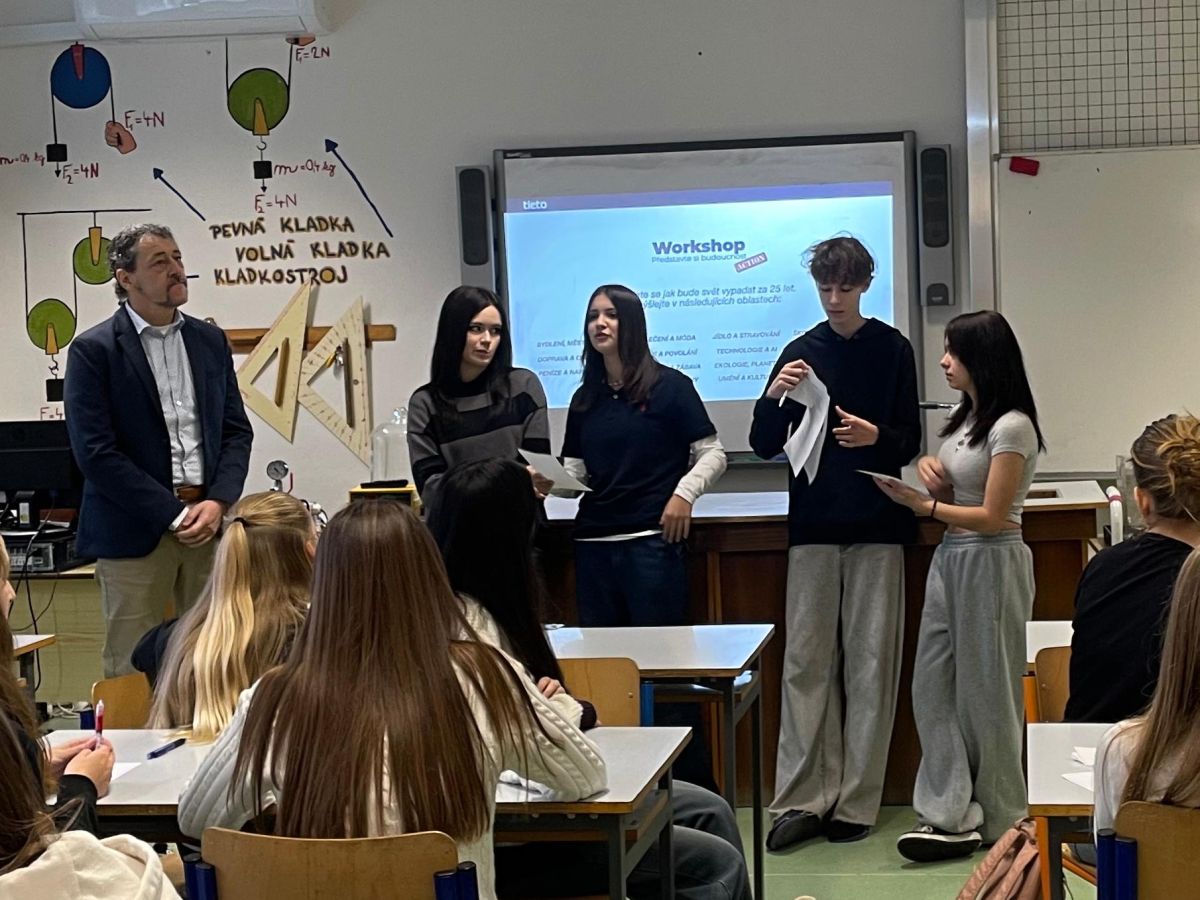 V pondělí 15. 12. se na naší škole uskutečnil inspirativní workshop Designers for Future, určený pro žáky 8. ročníku. Workshop vedl Tomáš Gröpl z firmy Tietoevry a byl zaměřen na kreativní myšlení
